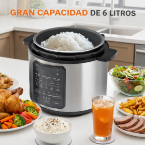 Con una capacidad de 6L, esta olla eléctrica grande es ideal para alimentar a toda la familia o a 5 – 7 personas, ofreciendo espacio suficiente para preparar comidas deliciosas de forma cómoda y práctica.